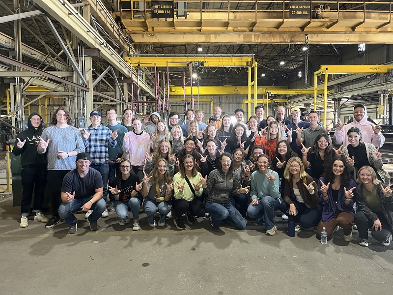 "We took a group of 17 students (not all shown in the group photo) from Lawrence, KS to Topeka, KS. They were able to tour the HME, Inc. steel fabrication facility, as well as the Topeka Foundry and Ironworks facility. They were at HME and/or Topeka Foundry for around 3.5 hours, including the provided lunch, tours, and other activities."