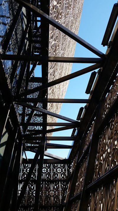 Adjaye says structural steel supports the building’s facade made up of 3,600 painted alloy panels that feature an African textile pattern. The bronze color reflects the emerging African-American guilds of casting and ironworking in the South after the Civil War.