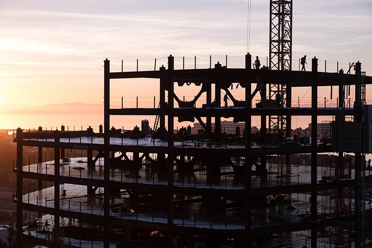 The building includes offices, conference rooms, biotech laboratories and a fitness center. Since beginning the job in February, the team has made impressive progress on this high-visibility project, working closely with subcontractors and a 200-ft-high tower crane to erect the 21 steel levels. Ironworkers, deckers and welders file in quickly after each floor is erected to keep trade work on schedule.