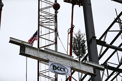 To commemorate the steel topping out, construction crews hoisted the final piece of steel, which was recently painted white and signed by Vikings staff and construction workers, into position along with the traditional evergreen tree and American flag. As of May, construction crews have logged more than 80,000 hours on the project and more than 130 workers are on site daily. Of the 38 subcontractors awarded work thus far, 32 are Minnesota-based.