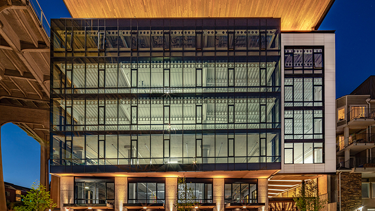 Seattle’s sustainability-minded Watershed building, designed by Weber Thompson, also won a 2021 AISC IDEAS2 Award. The 61,000-sq.-ft office building uses castellated steel beams to increase natural light in the interior space and contribute to the design’s flexibility--while cutting 20% to 30% off the weight of the beams, which allowed the team to use smaller lateral system elements. The building’s impact goes beyond its walls, as its downward-sloped filtration system can treat up to 400,000 gallons of stormwater from the adjacent highway each year, protecting the water quality in nearby Lake Union and the salmon migration route that runs through it.