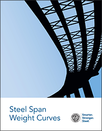 The Steel Span to Weight Curves are the quickest way to determine the weight of steel per square foot of bridge deck for straight, low skew, plate girder bridges. They are also a great way to compare various span arrangements and girder spacings. With very little effort the weight per square foot can easily be converted to a potential dollar value for the steel superstructure.
