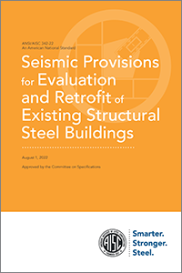 2022 Seismic Provisions for Evaluation and Retrofit of Existing Structural Steel Buildings (ANSI/AISC 342)Seismic Provisions for Evaluation and Retrofit was developed and approved by the AISC Committee on Specifications. It is a revision to the structural steel provisions provided in the 2017 edition of ASCE/SEI 41, Seismic Evaluation and Retrofit of Existing Buildings, and is intended to be adopted in Chapter 9 of the next edition of that standard. The 2022 version of ANSI/AISC 342 is the first edition of this standard. Dual-units format provides for both U.S. customary and S.I. units. |